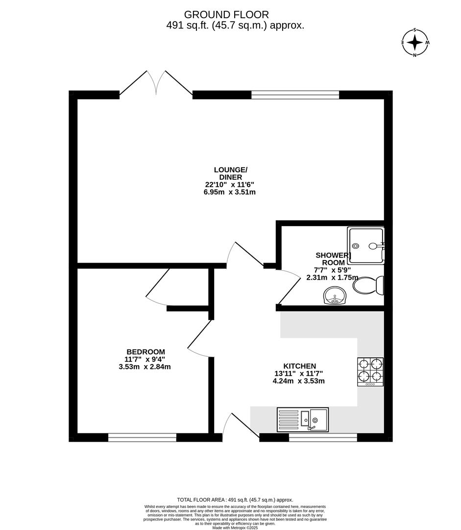 6.95m x 3.51m (22'9" x 11'6" )