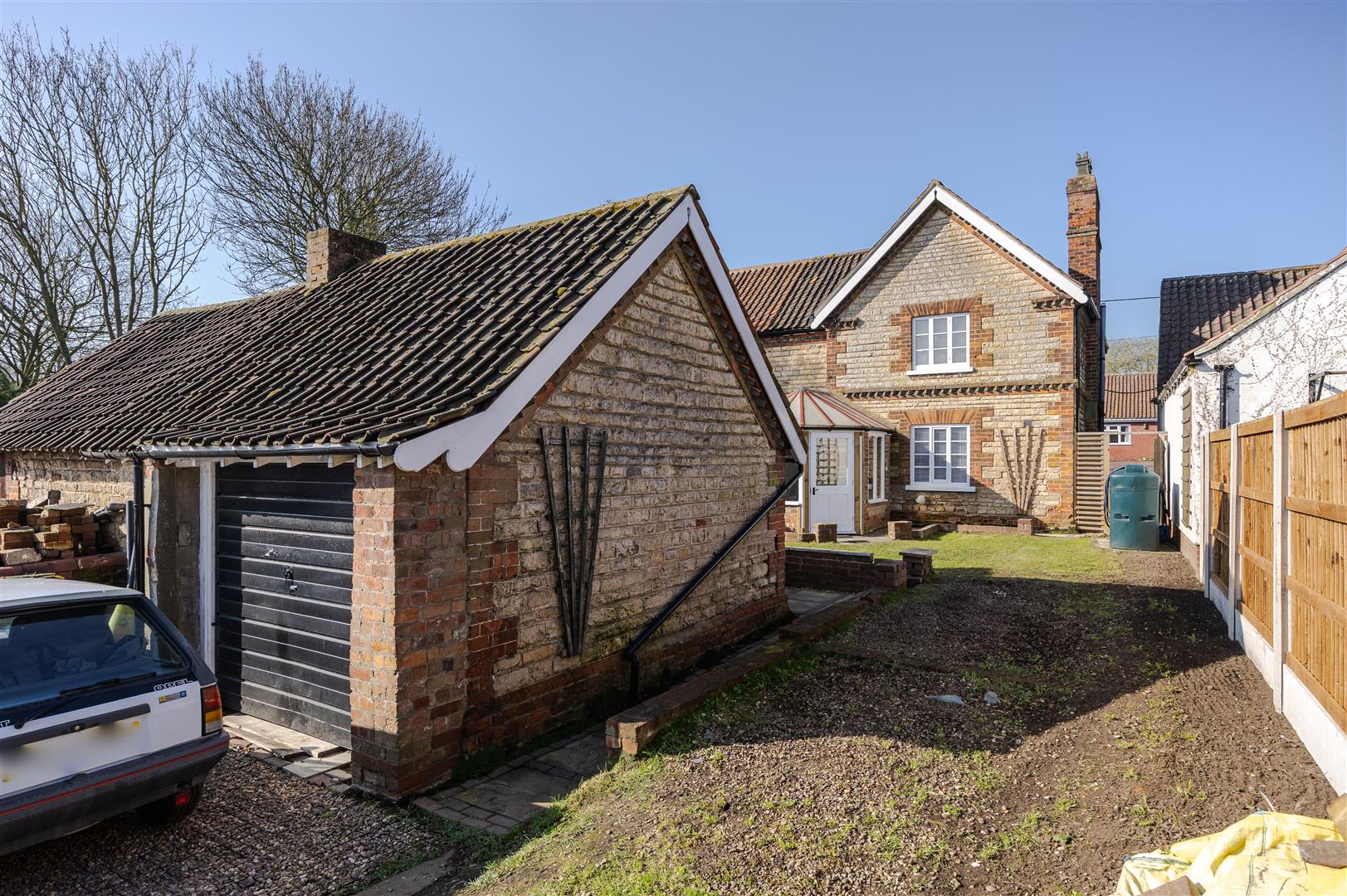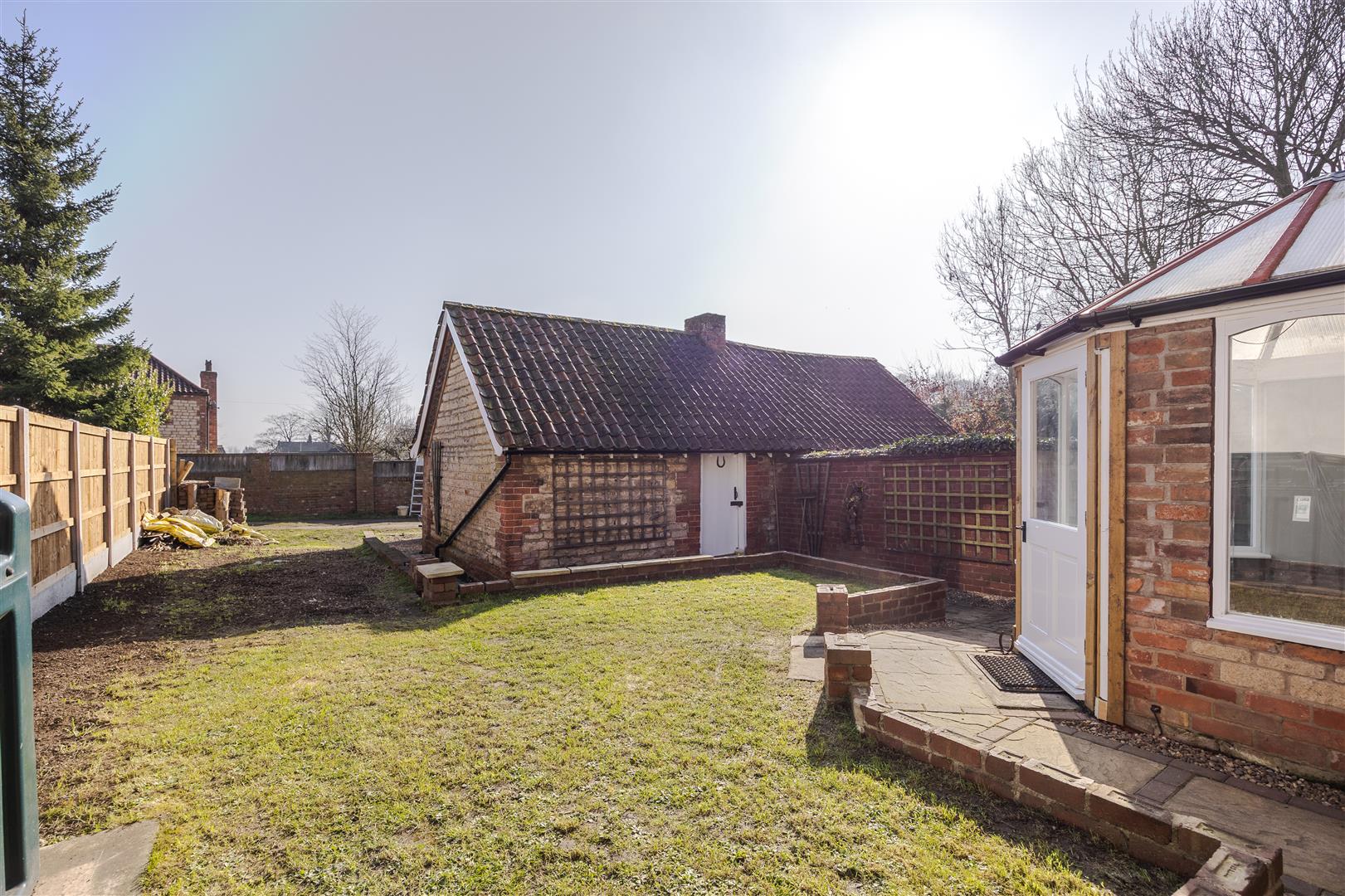 The main hall gives access to the stairwell and kitchen diner and has some fitted storage space too. The lounge has a fantastic exposed brick fireplace place with electric fire then off the back a conservatory looking out onto the private garden. Upstairs we have three good size bedrooms and a bathroom with fitted storage spaces too. Outside, the gardens are mainly lawned with pathways from the front to the rear, with a detached garage at the back, driveway and parking accessed over a shared driveway from School Lane.
