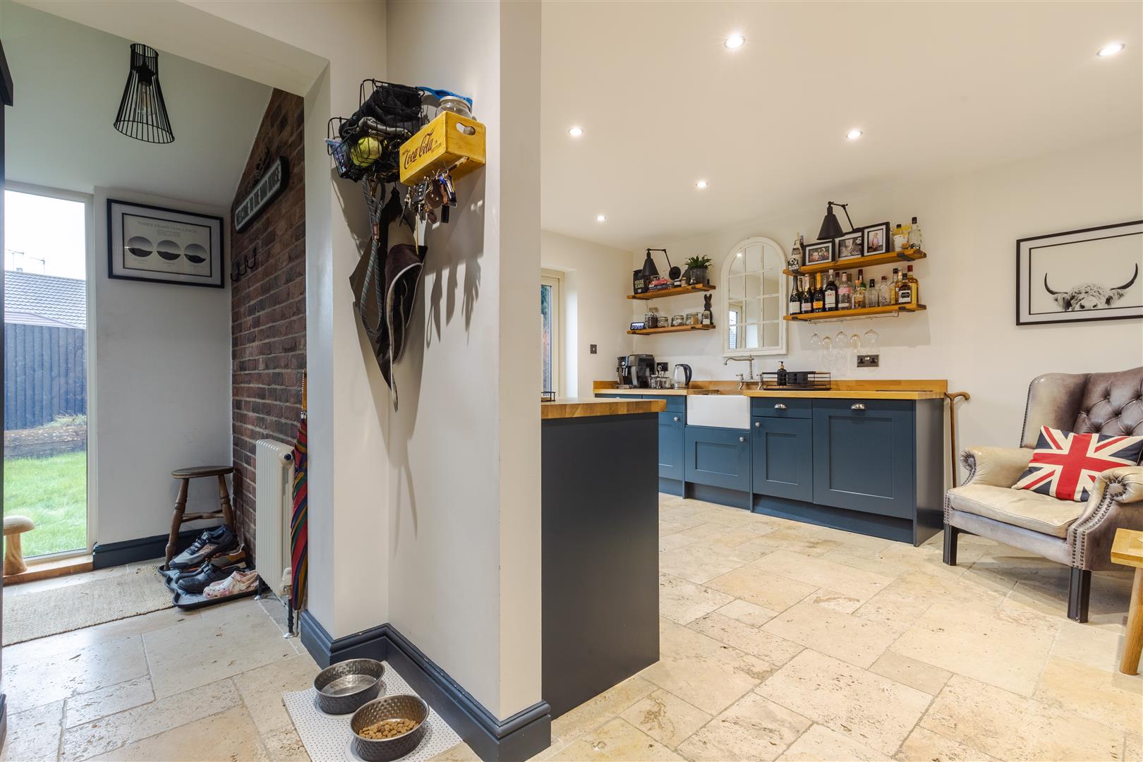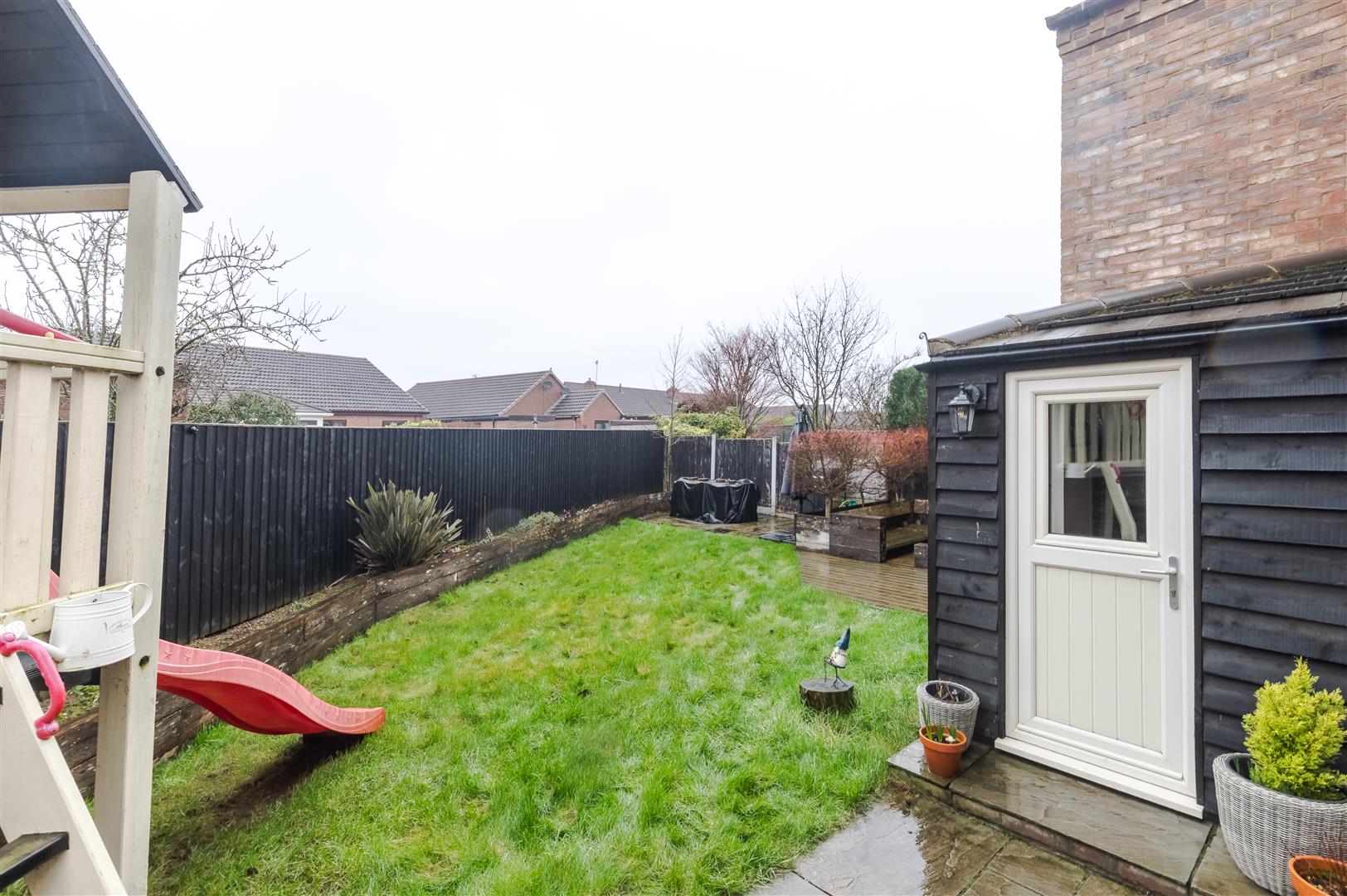 Outside the property you have a low maintenance wrap around garden with turf and patio seating areas, off road parking to the front of the block paved driveway and access to the garage that the sellers have as a storage room.
