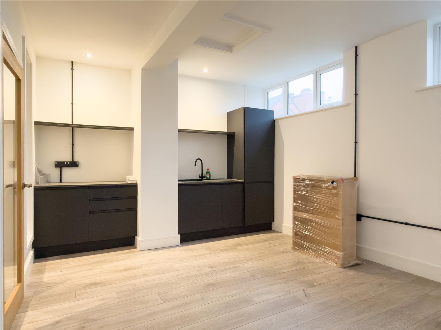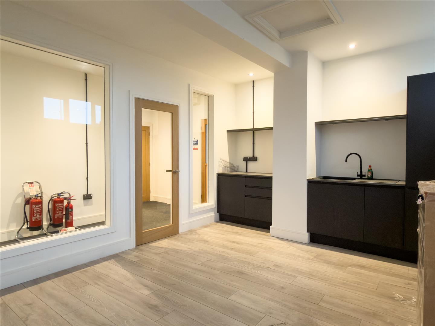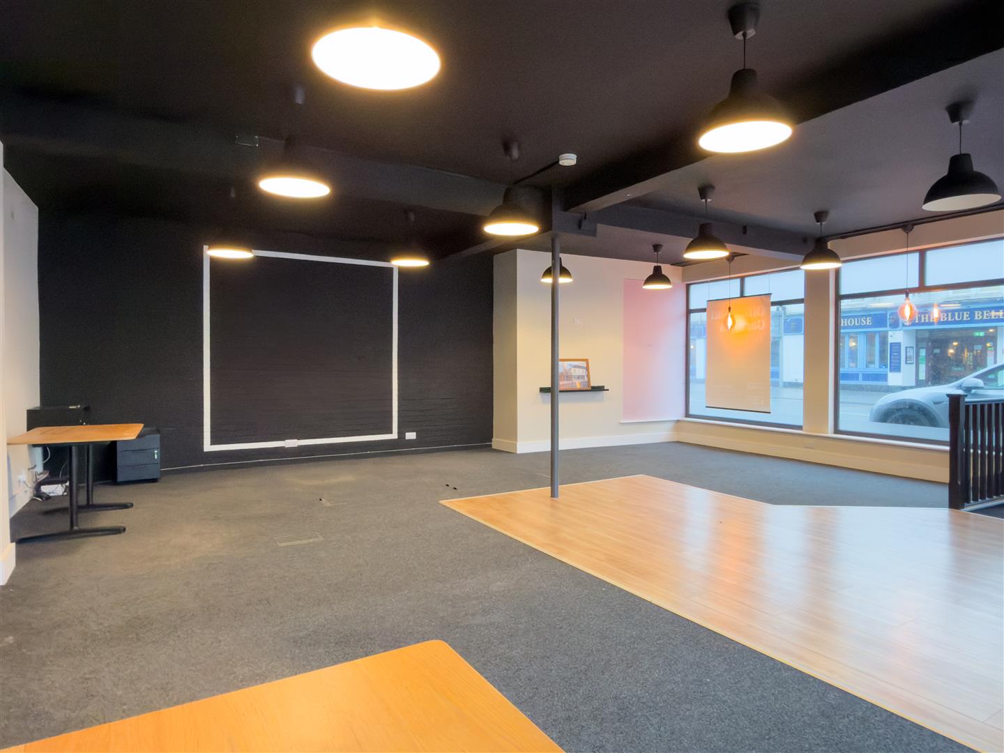 The total ground floor spans 3000sq ft including the garage. The front of the building is refurbished office space, with a large front room, hall way, kitchen/staff area, separate office and a w.c. the rear is a large garage space, accessed with sliding doors at the side or the internal personal door.