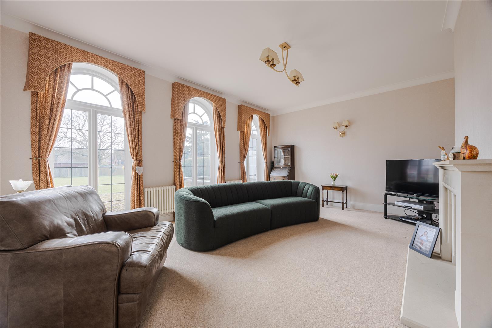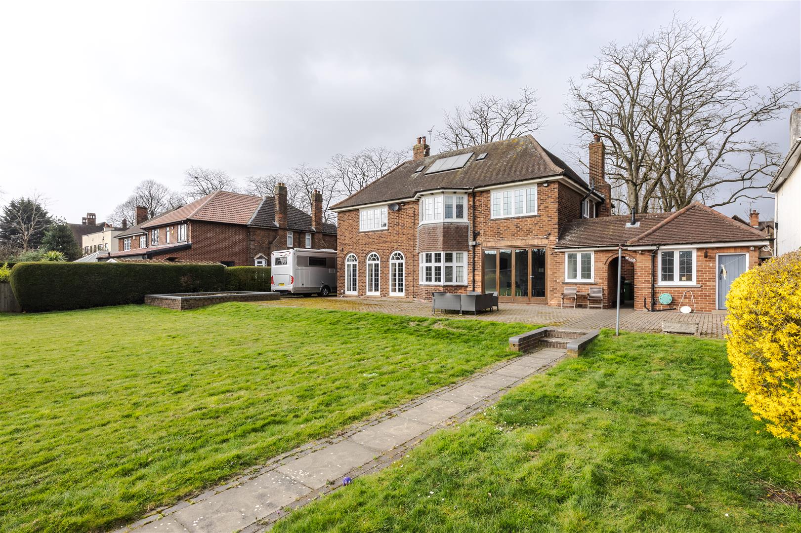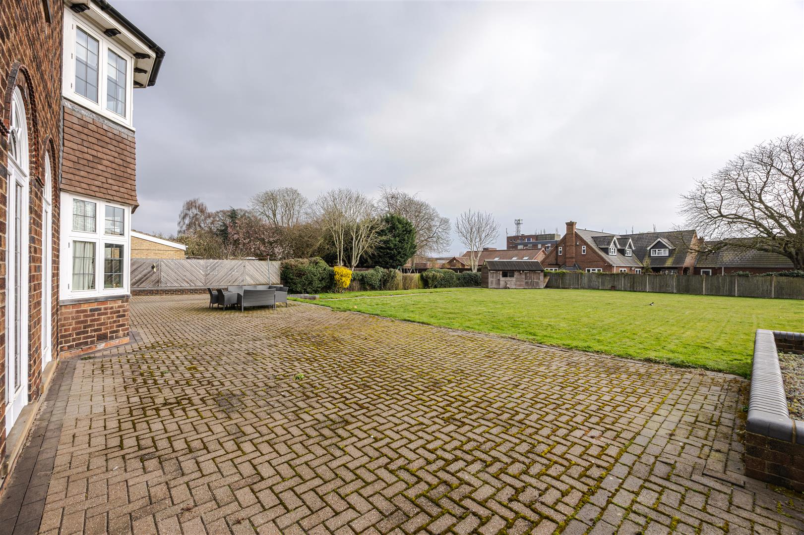 You have a sweeping in and out drive, hardstanding/access to the side, garage, store and secure gardens outside.